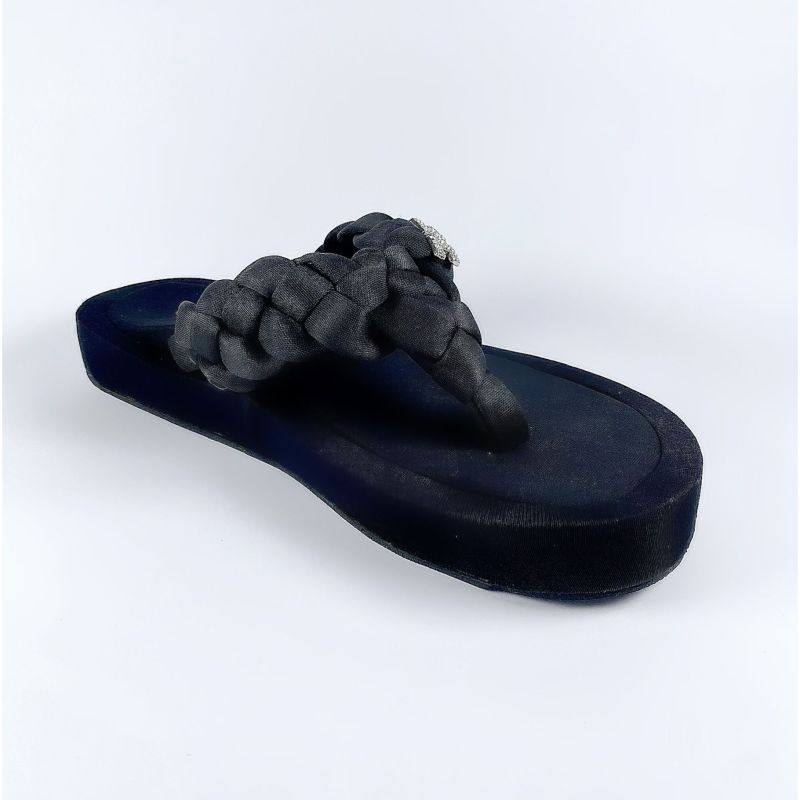 2024 New Style Woven Soft Black Thick bottom Slides For Women