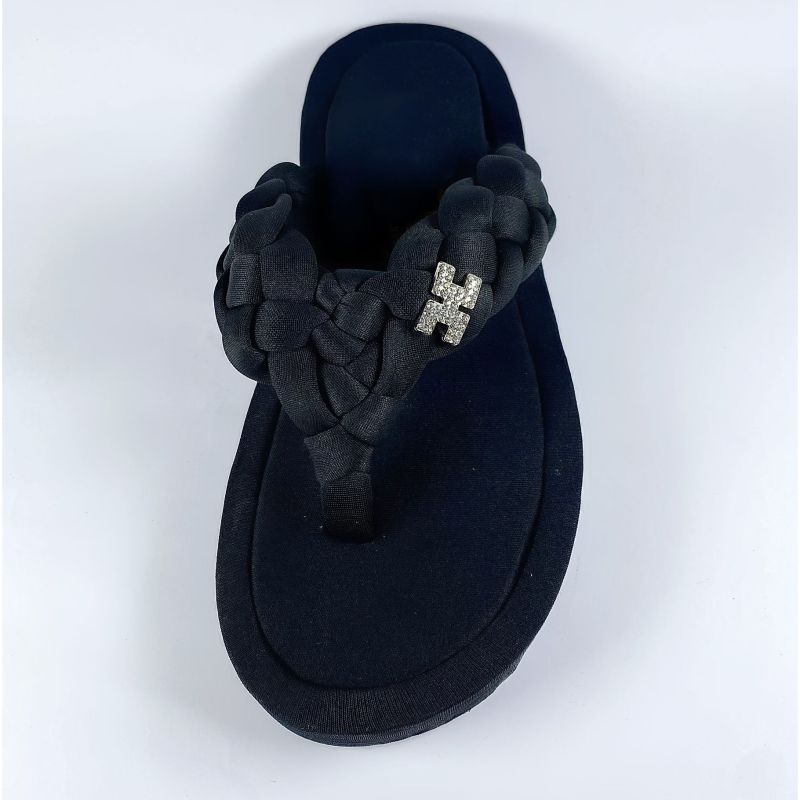 2024 New Style Woven Soft Black Thick bottom Slides For Women