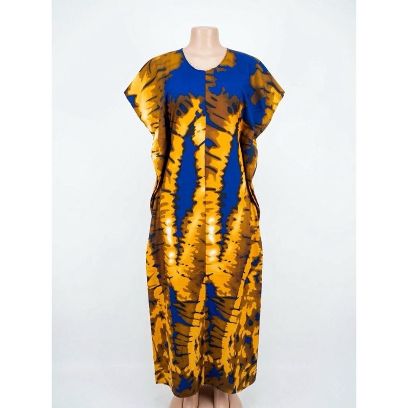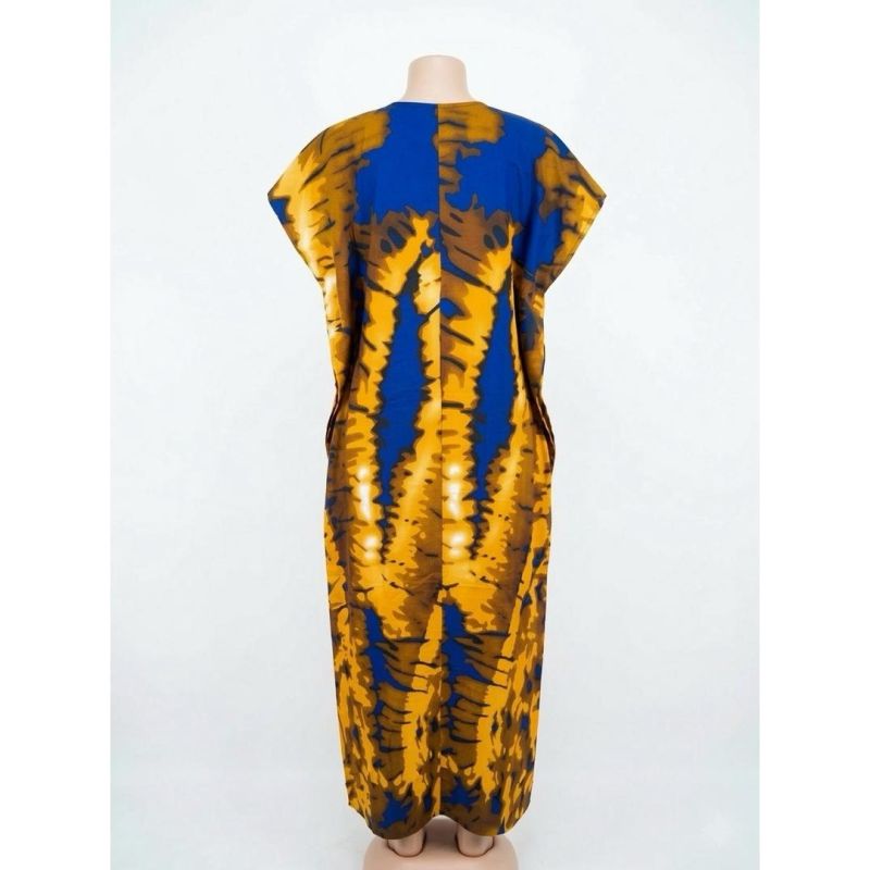 African Ankara Print Dress - Royal Blue & Gold Geometric Pattern