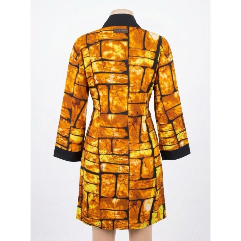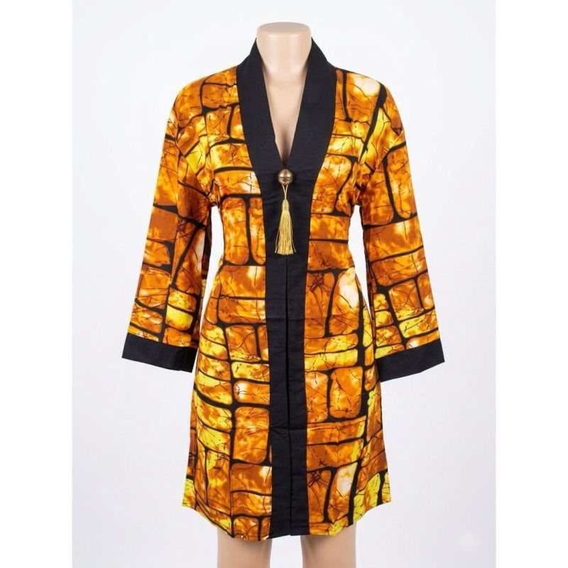 Amber Batik Shirt Dress with Black Trim & Gold Tassel