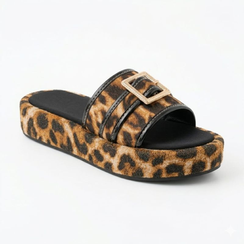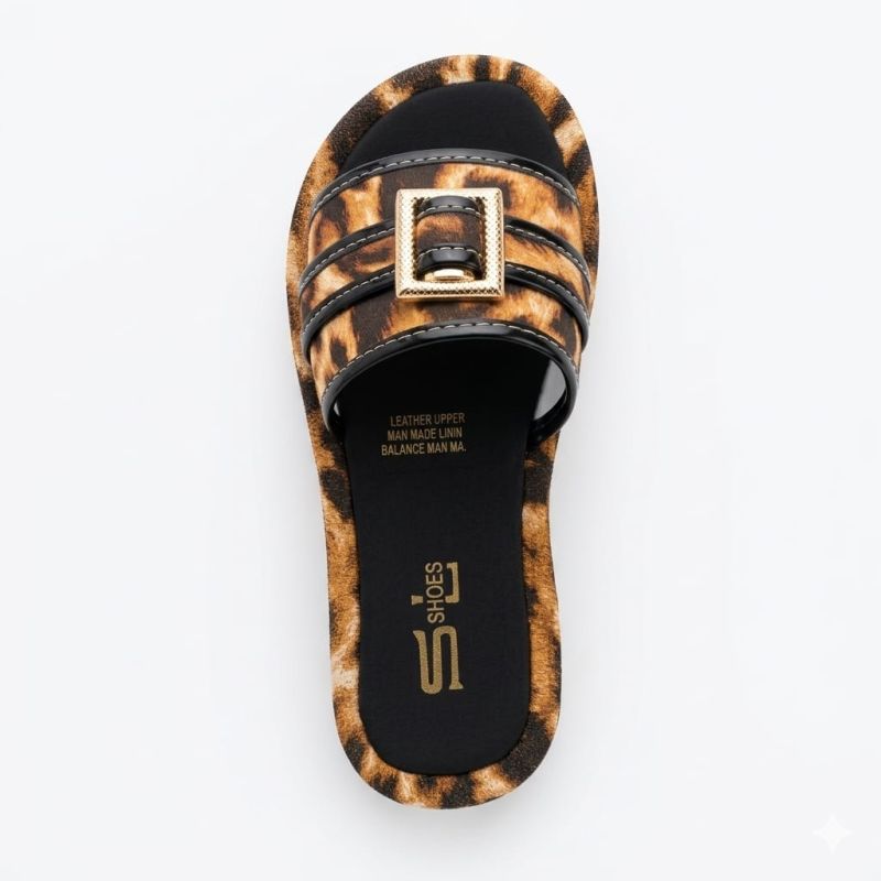 Animal skin material used for slippers with buckle design