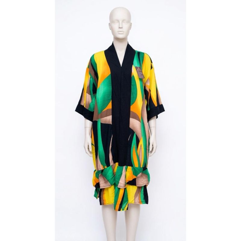Beautiful ladies gown with black material design on the hand and neck