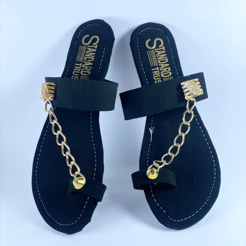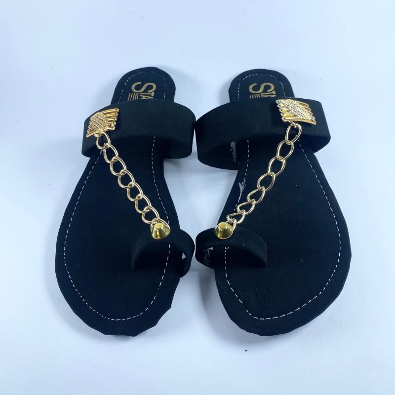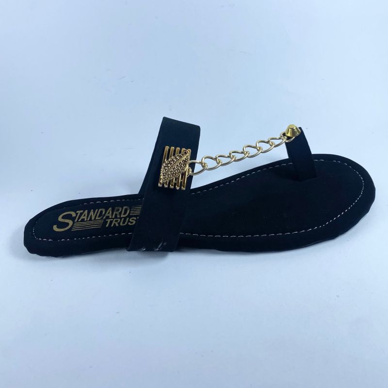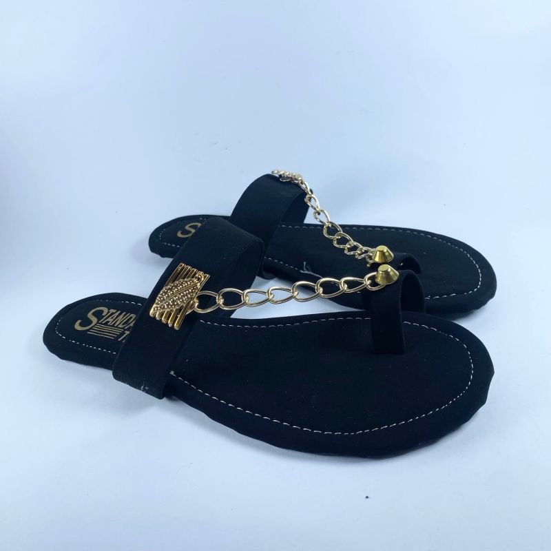 Black And Gold Women's Fancy Flat Sandals