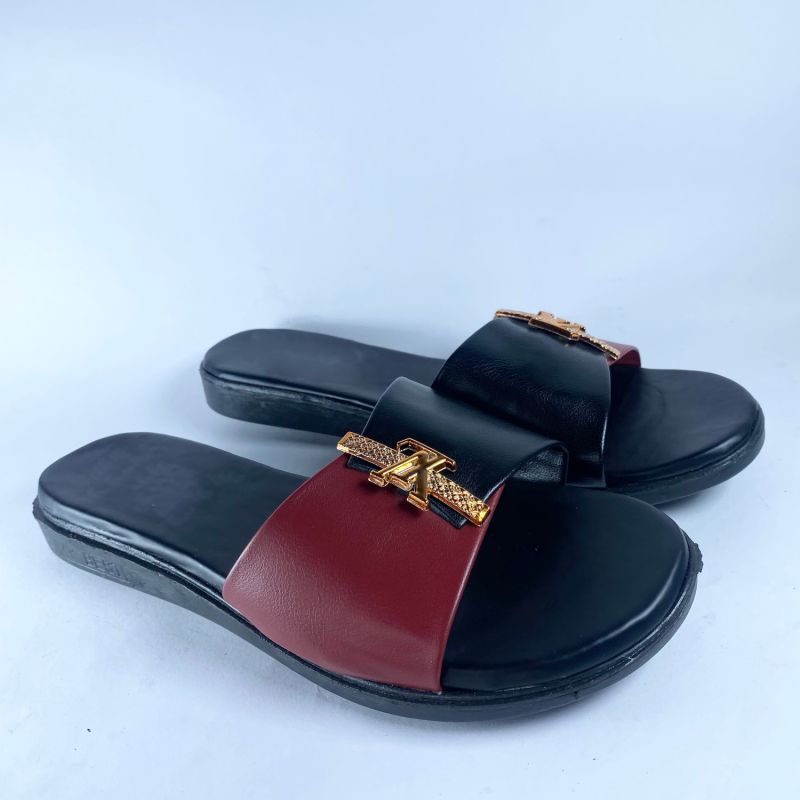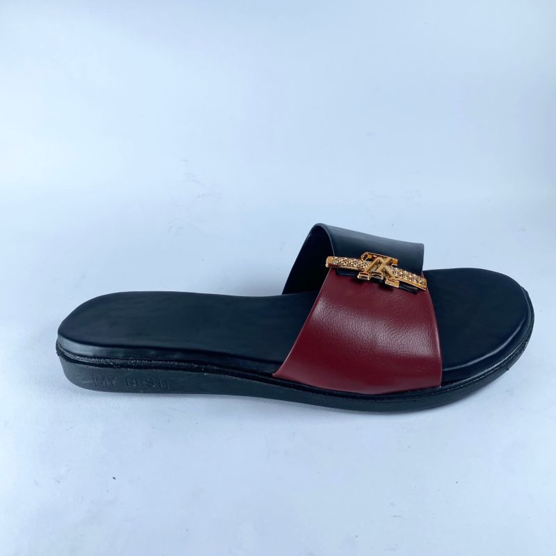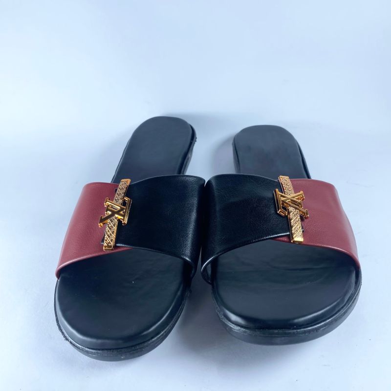 Black And Red Top Flat Slide Slipper For Ladies