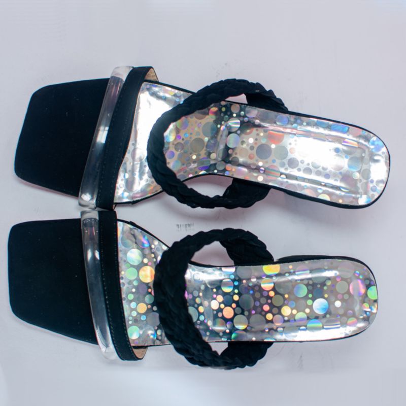 Black And Silver Design High Heel For Outdoor Wear - Ladies
