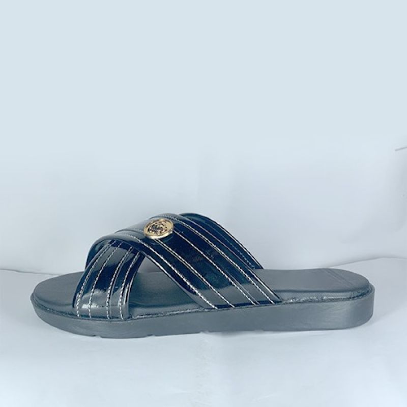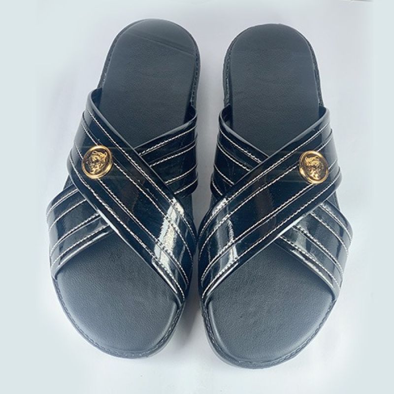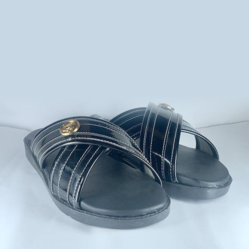 Black cross strap slippers design for men