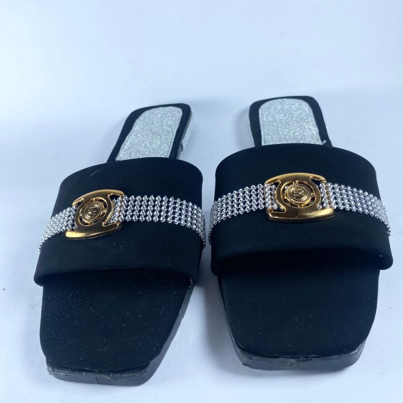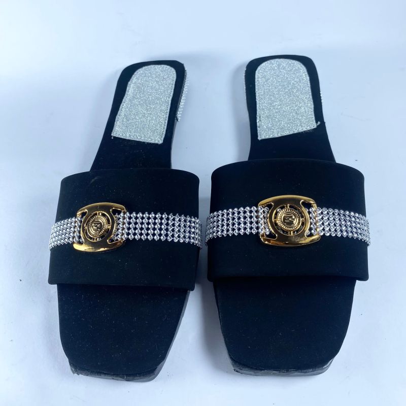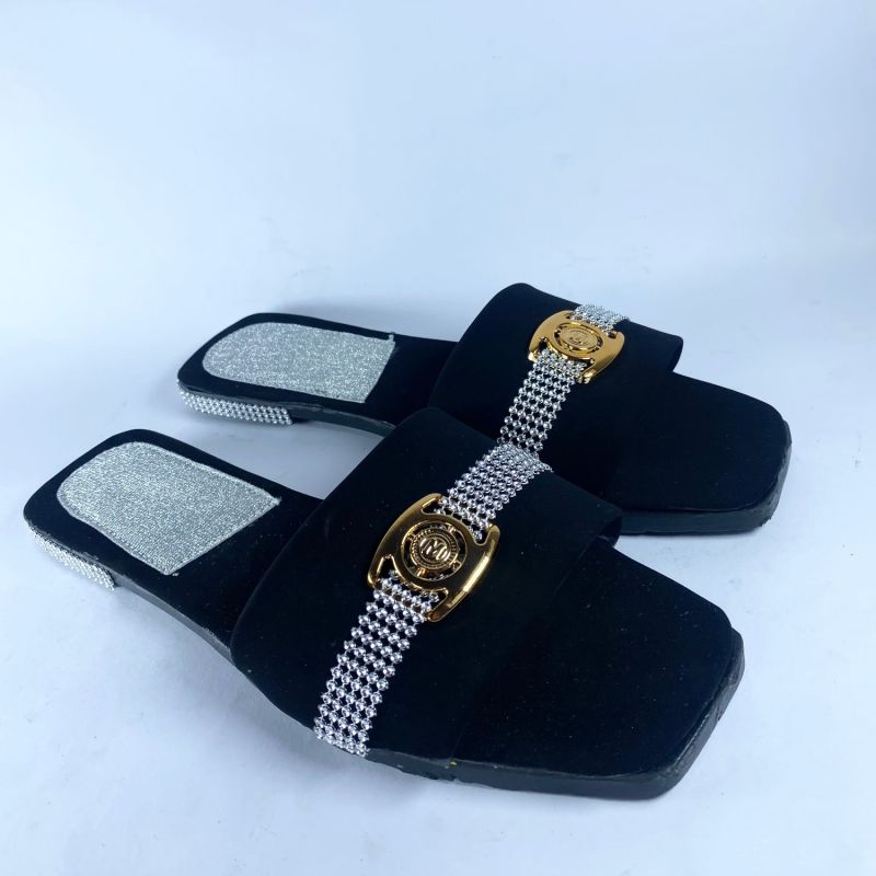 Black Design Ladies Flat Slide
