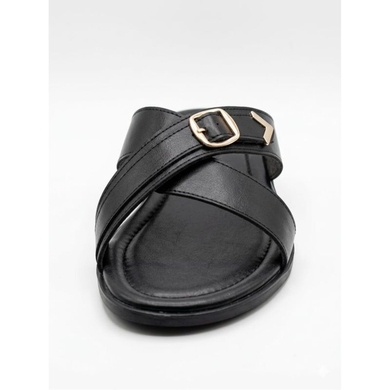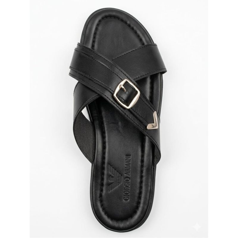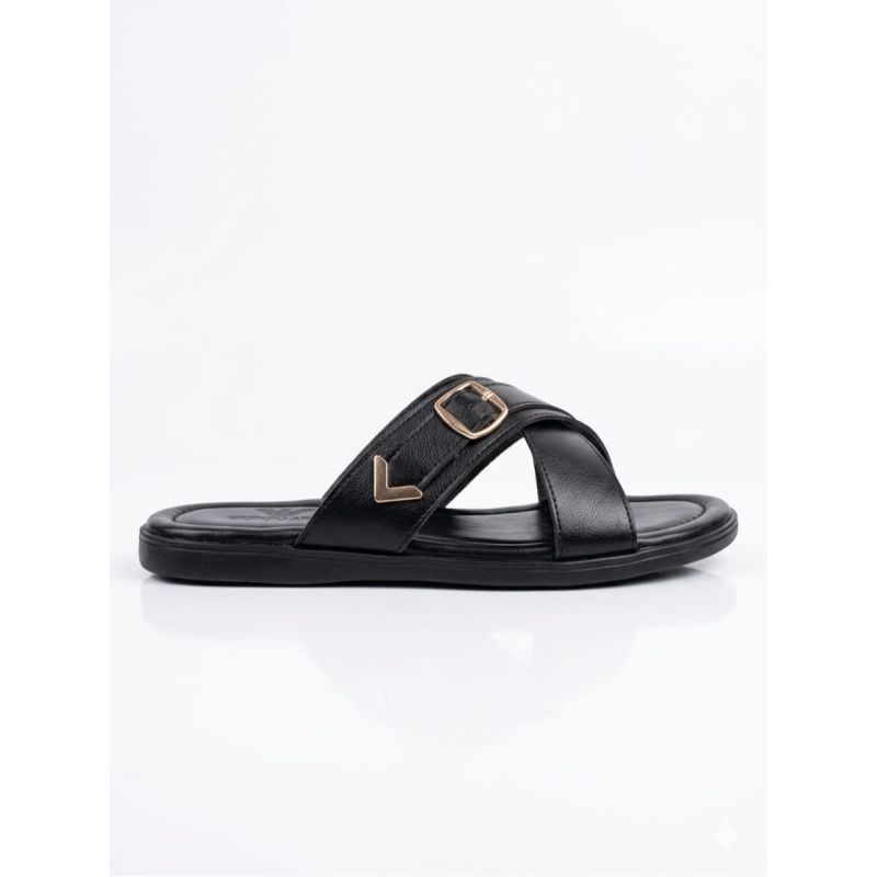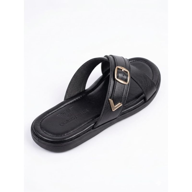 Black design male slippers with fancy