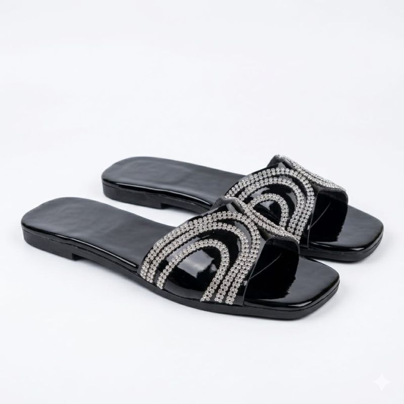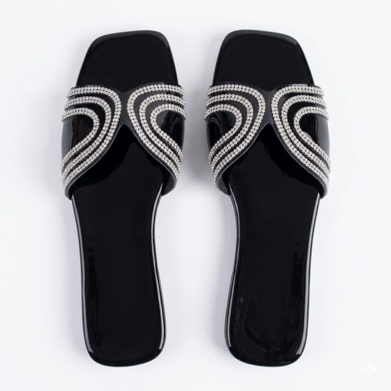 Black flat slippers ...