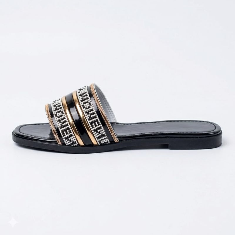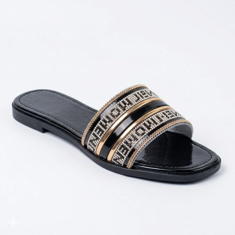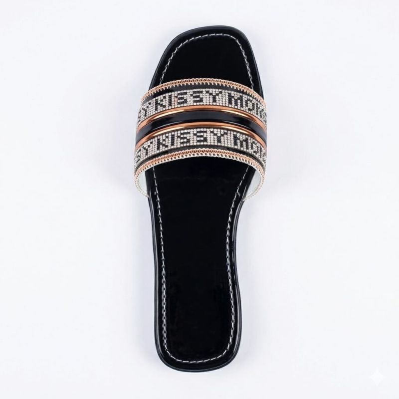 Black ladies slippers with customized fancy