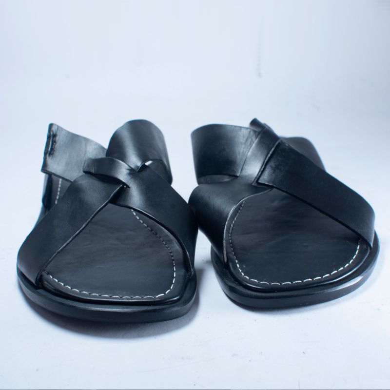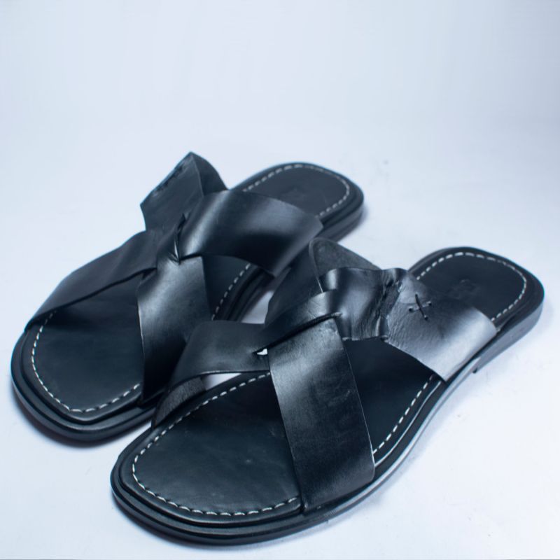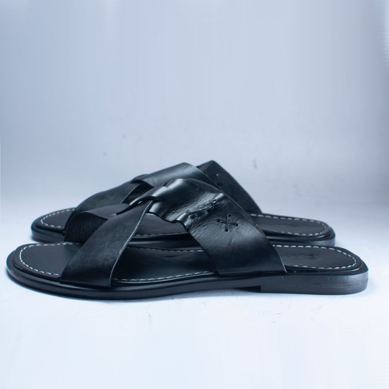 Black Leather Cross Top Pam Sandals For Men