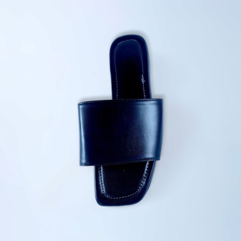 Black Leather Men Women Slide