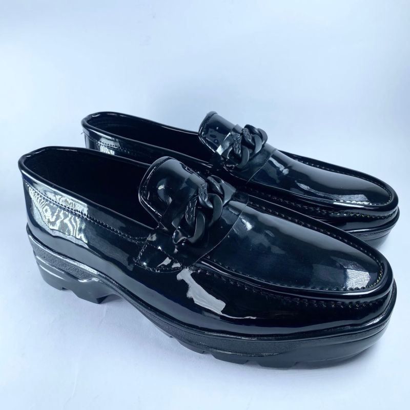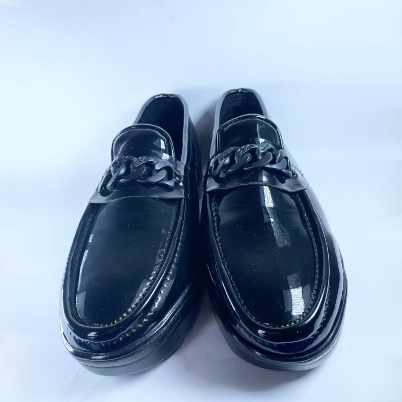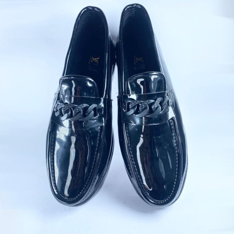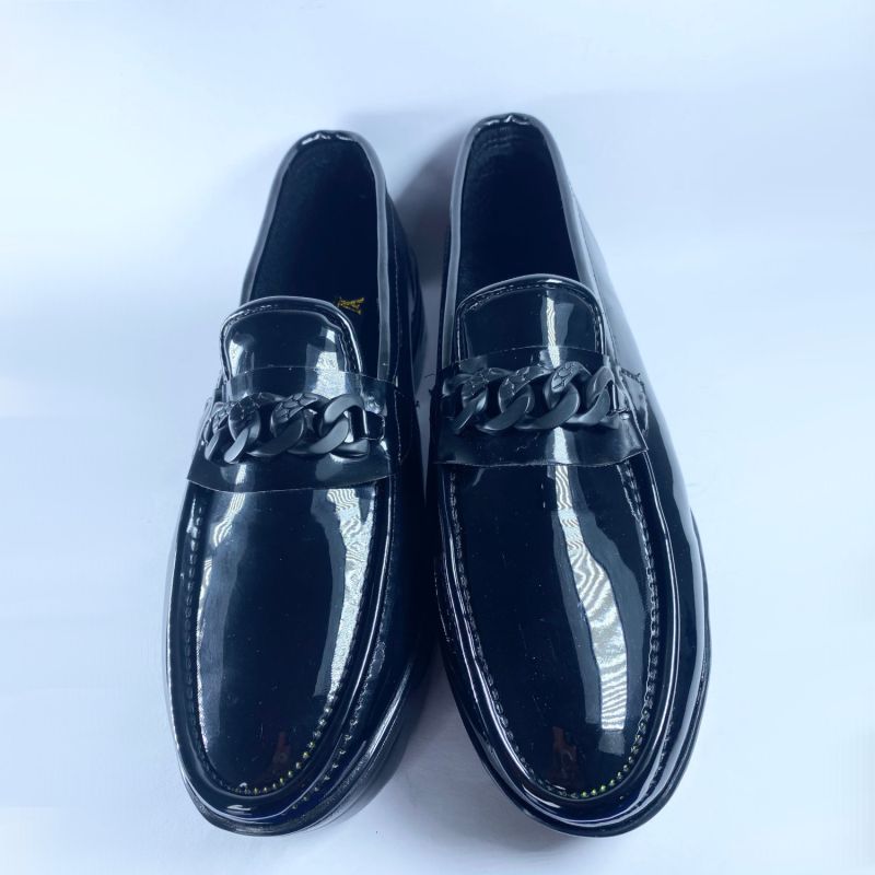 Black Loafers for Men Patent Leather Round Toe Slip-On