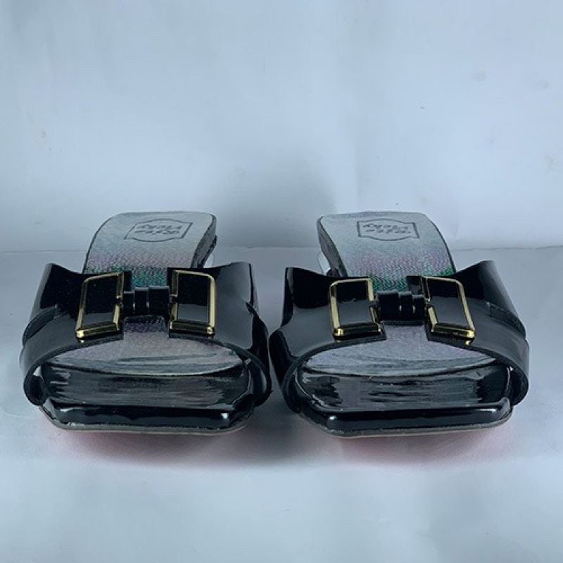 Black low heel slippers
