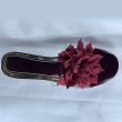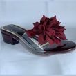 Black low heel slippers with oxblood design