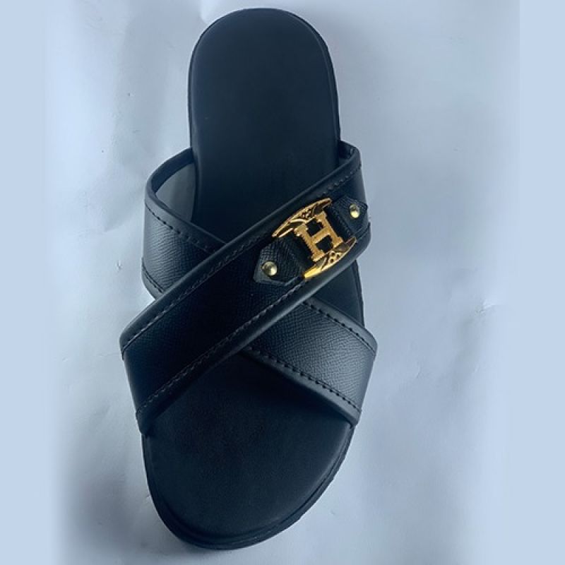 Black male slippers with fancy
