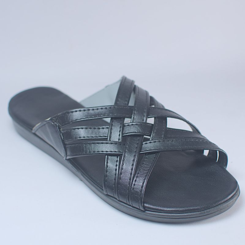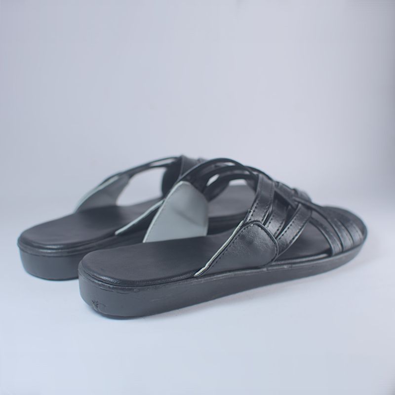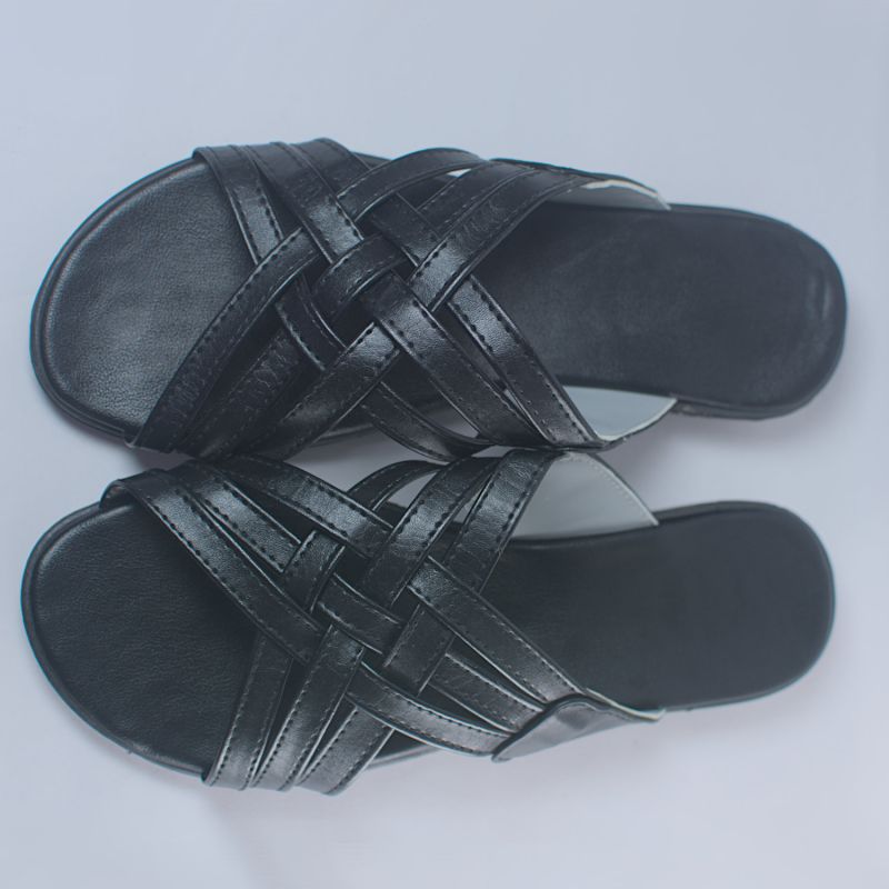 Black Multi Cross Layer Top Flat Slide For Men