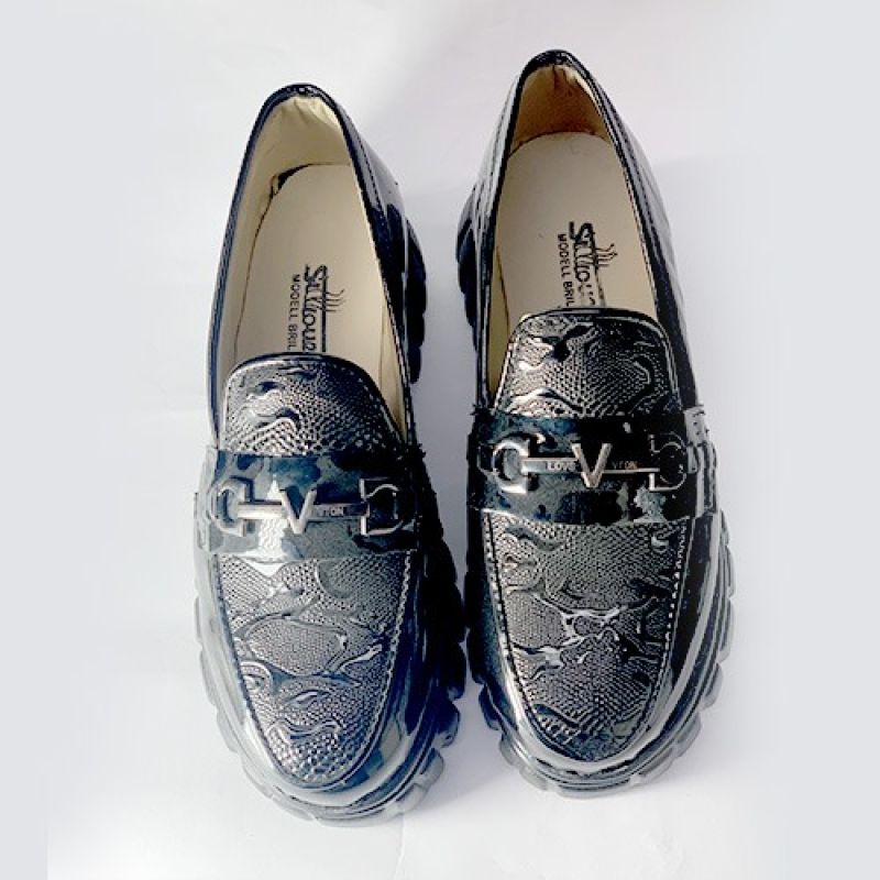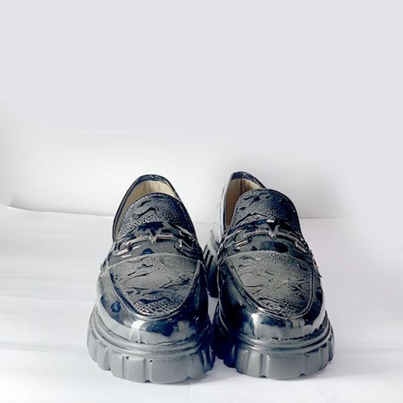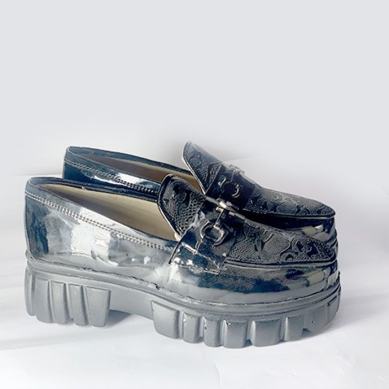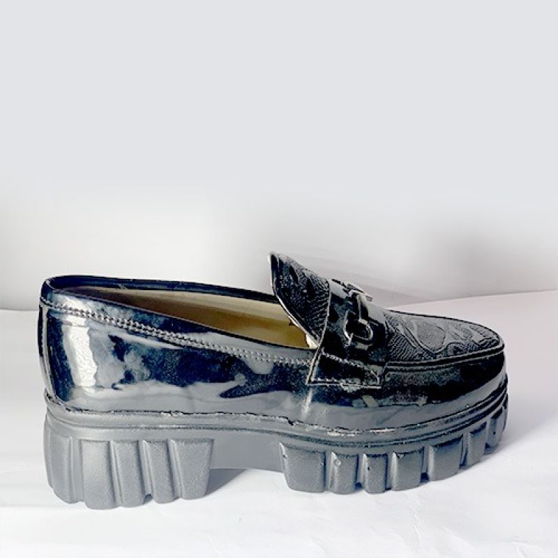 Black patter design shiny shoe