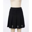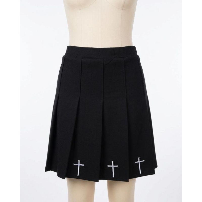 Black Pleated Mini Skirt with Embroidered White Cross Detail