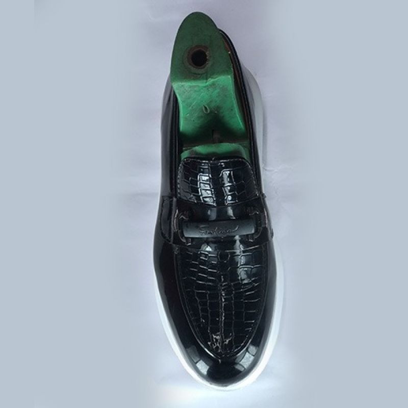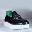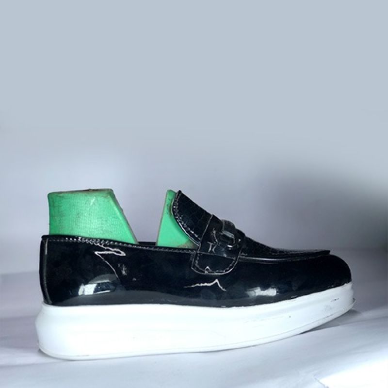 Black shiny shoe with big white sole