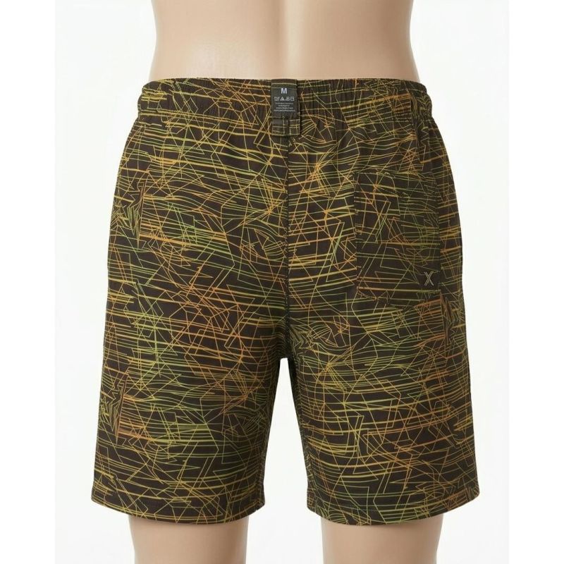Black Shorts with Yellow and Orange Linear Geometric Print