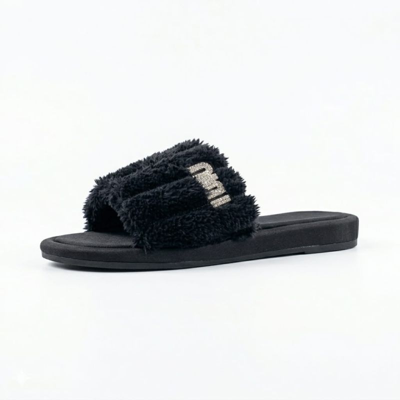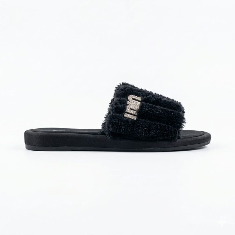 Black simple ladies flat slippers