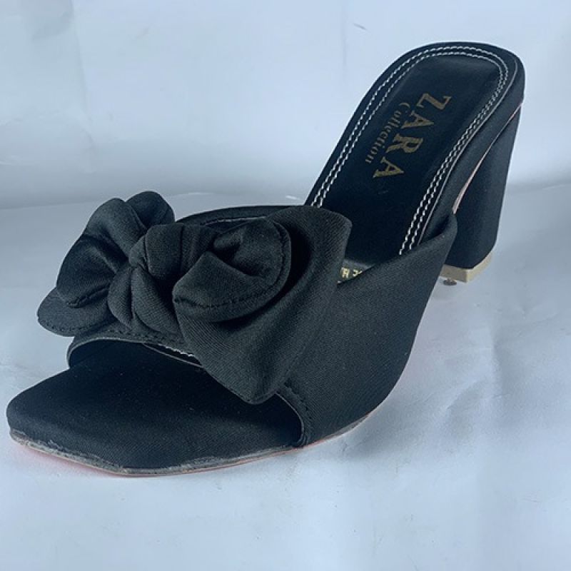 Black slippers heel with bow tie