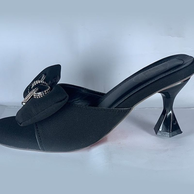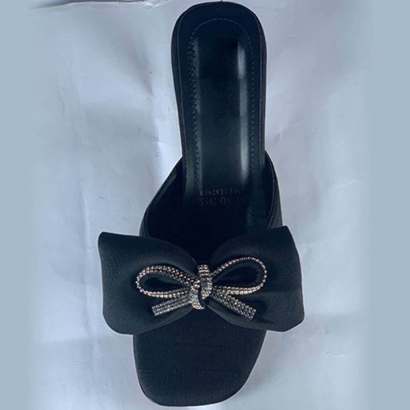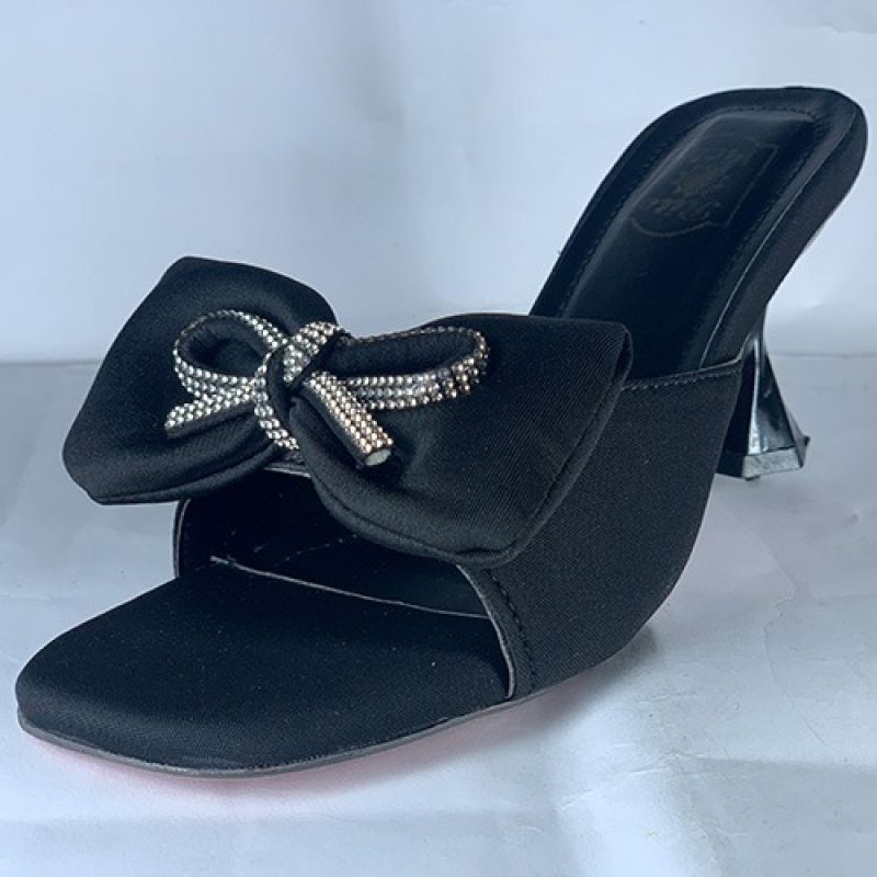 Black slippers heel with silver shinny tie design