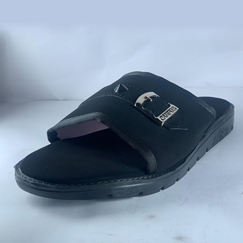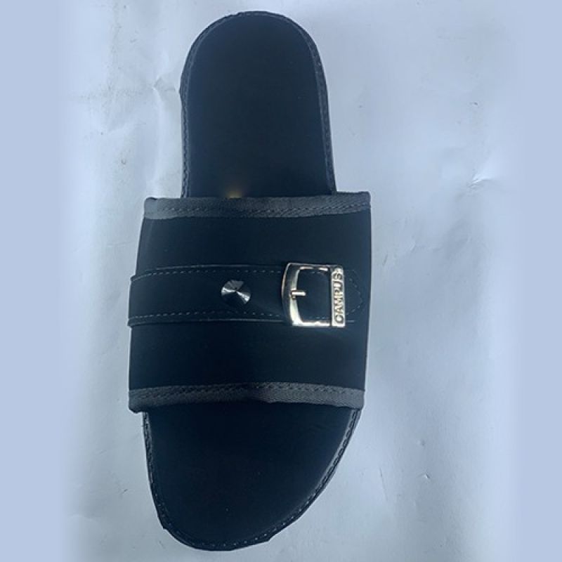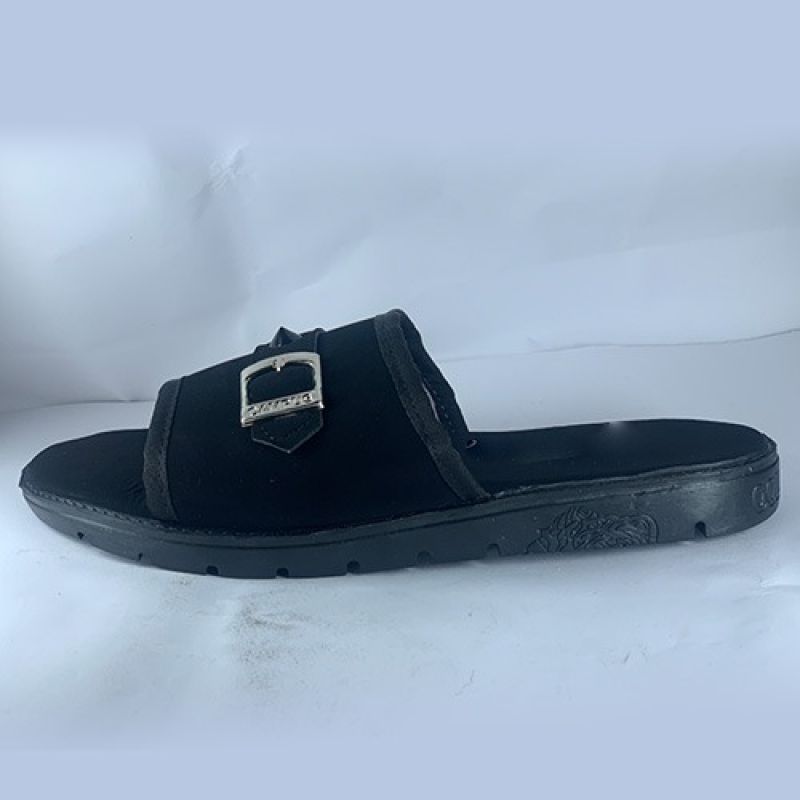 Black slippers with a buckle