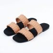 Black slippers with brown fancy strap