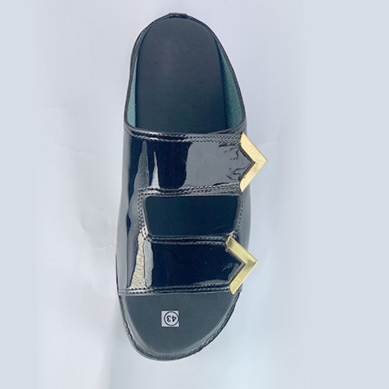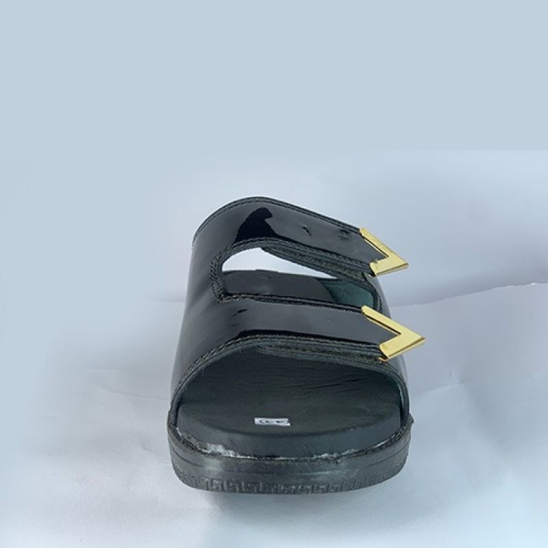 Black slippers with double strap and golden edge