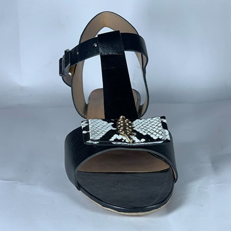Black slippers with mixed white design