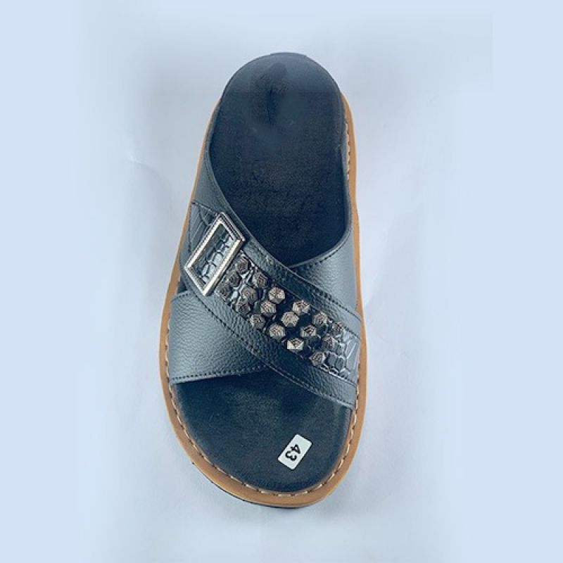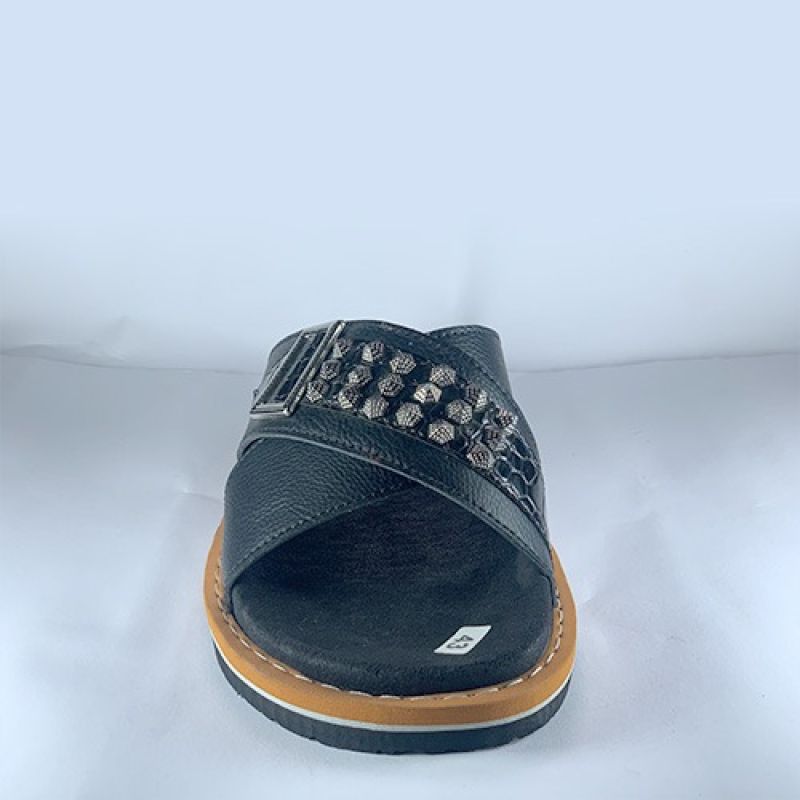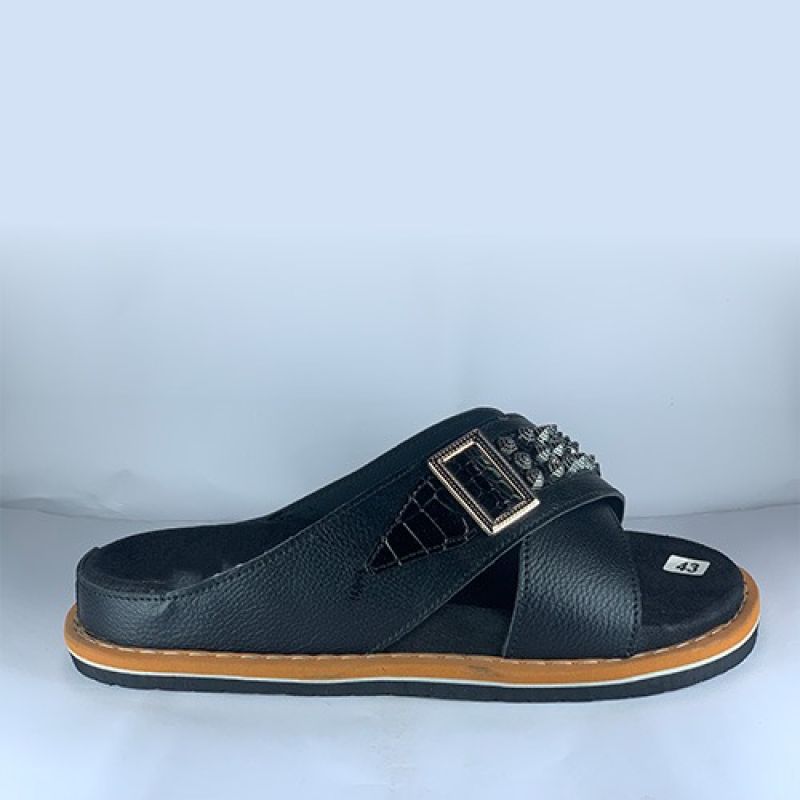 Black slippers with side buckle