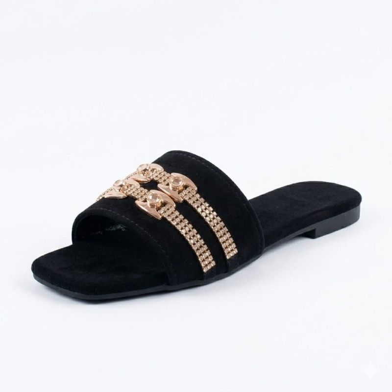 Black slippers with silver fancy for ladies