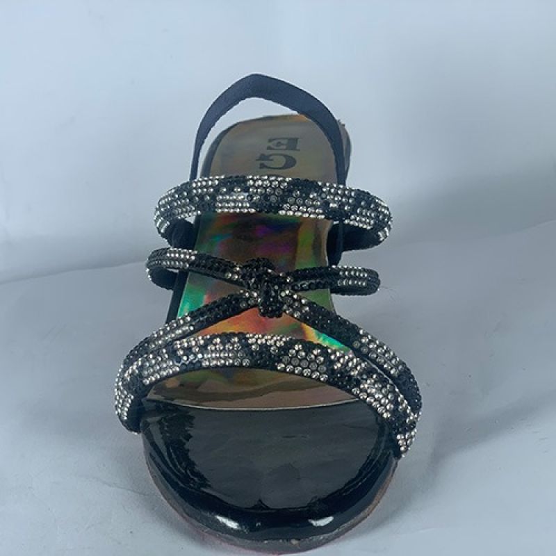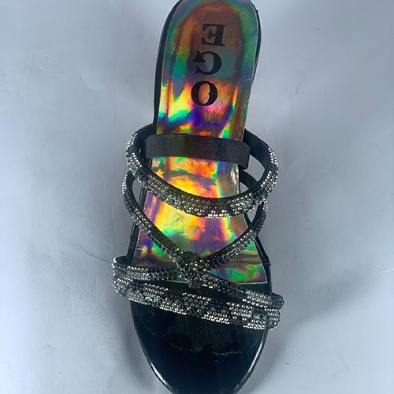 Black slippers with silver heels