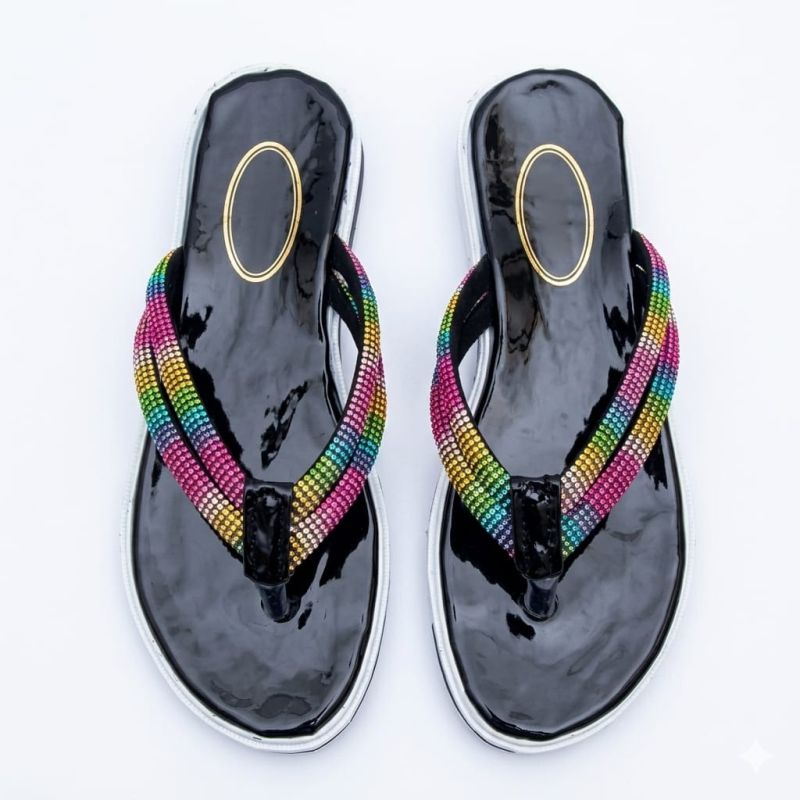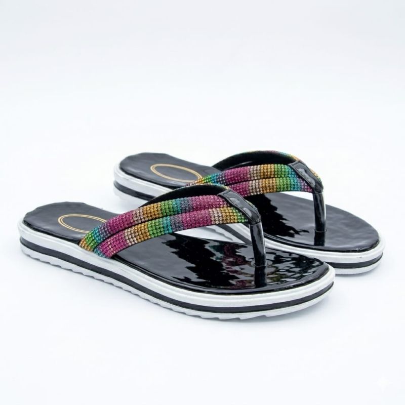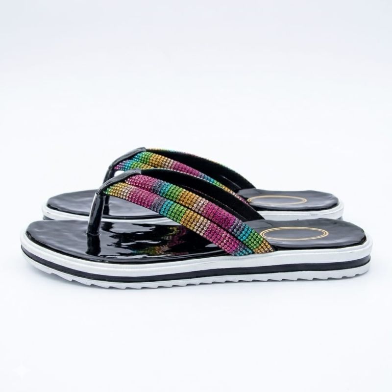 Black with white line and rainbow strap for ladies slippers