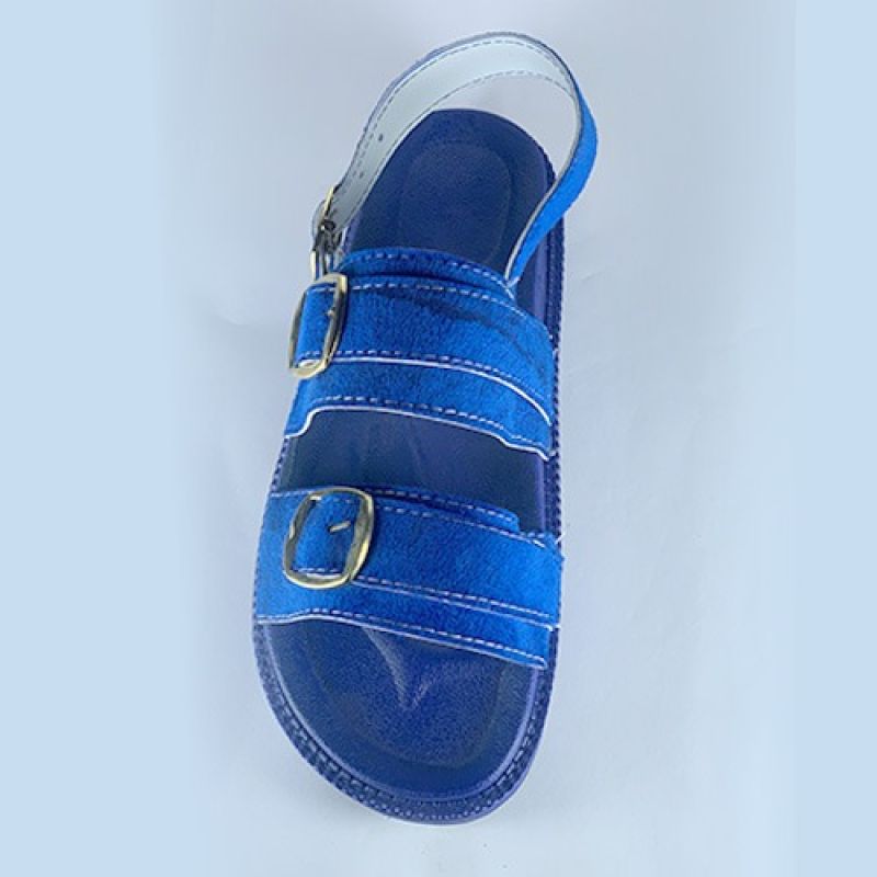 Blue jean slippers with buckle