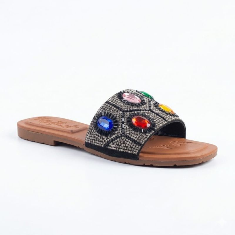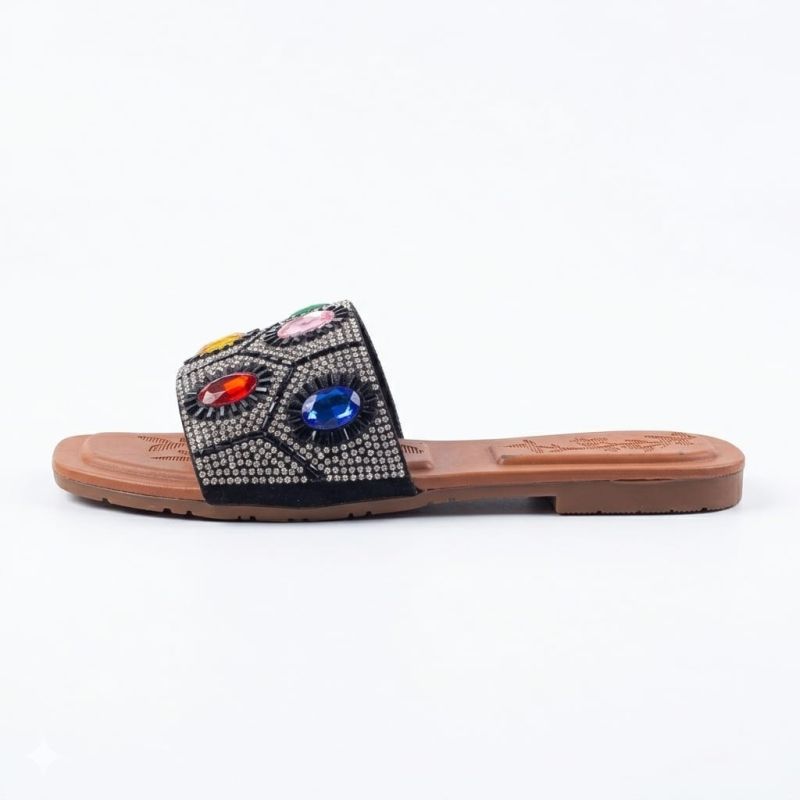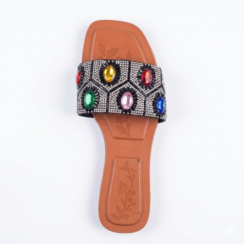 Brown ladies slippers with rainbow fancy