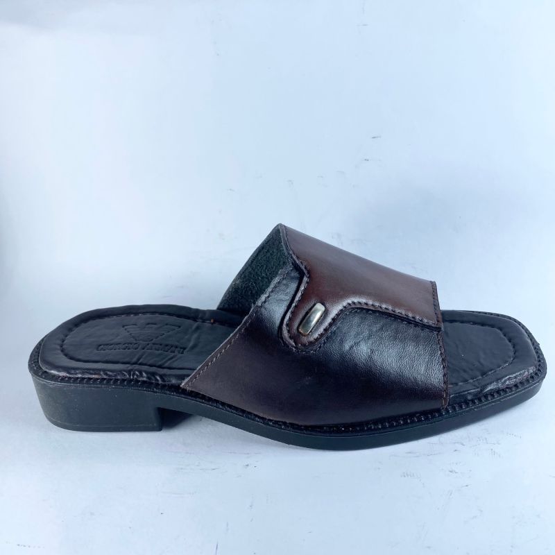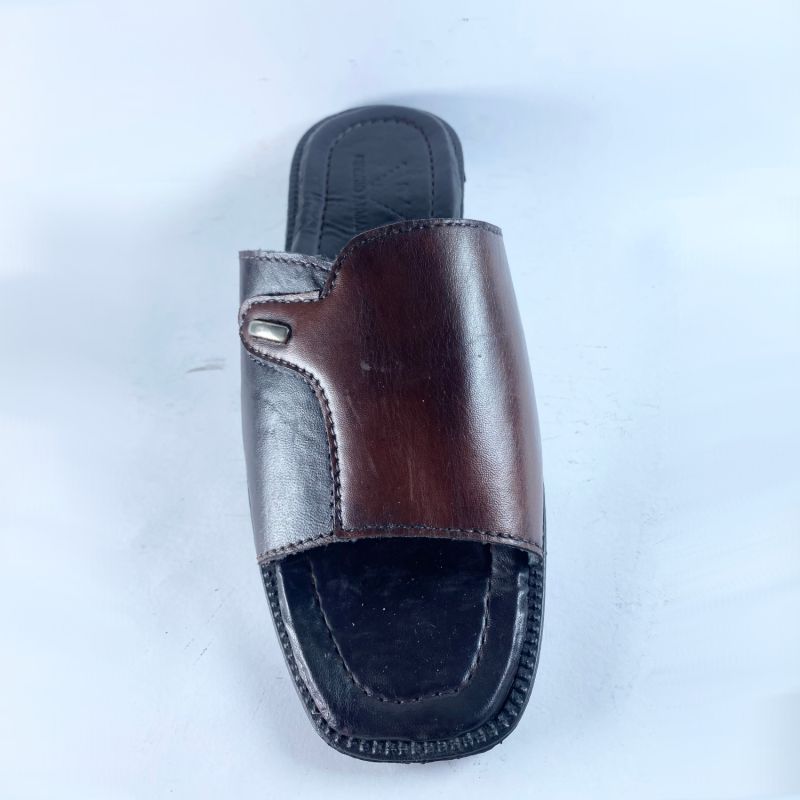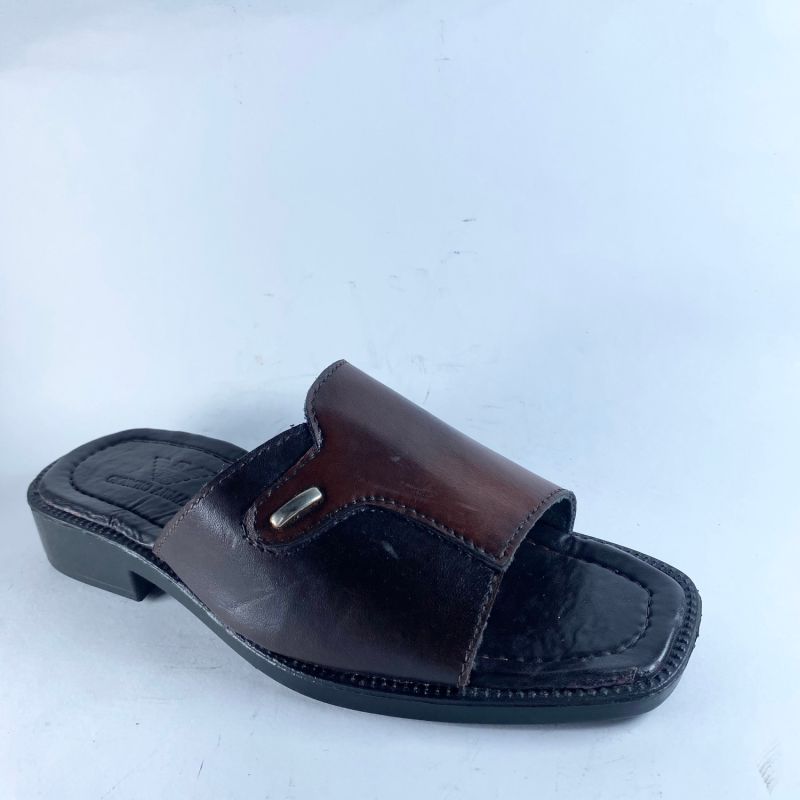 Brown Leather Slide Slipper For Men