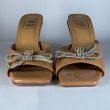 Brown slippers heel with golden design