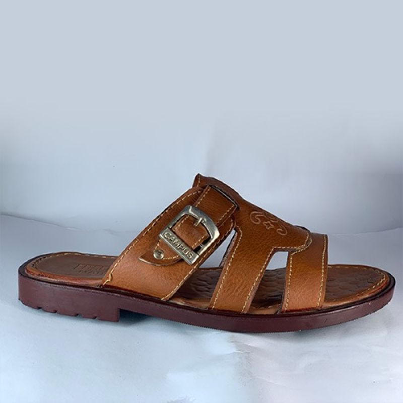 Brown slippers with side buckle for men