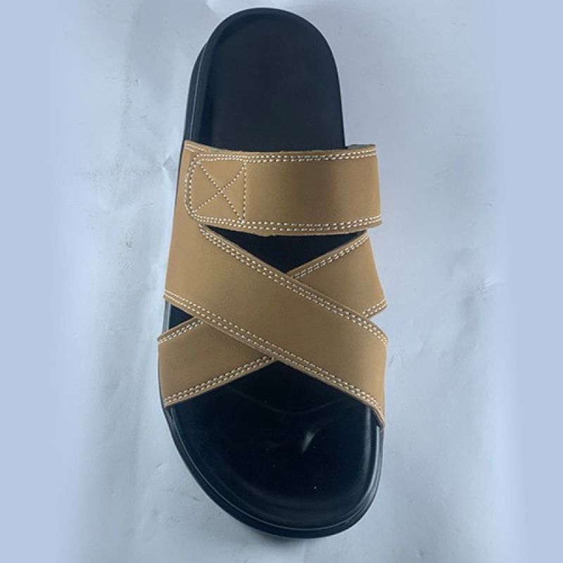 Brown slippers with strap and black sole