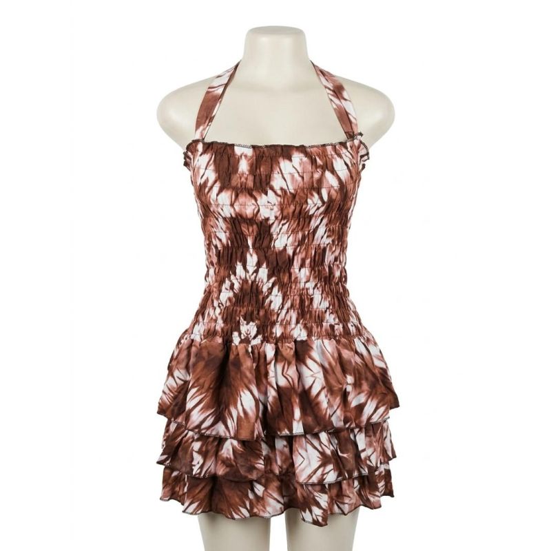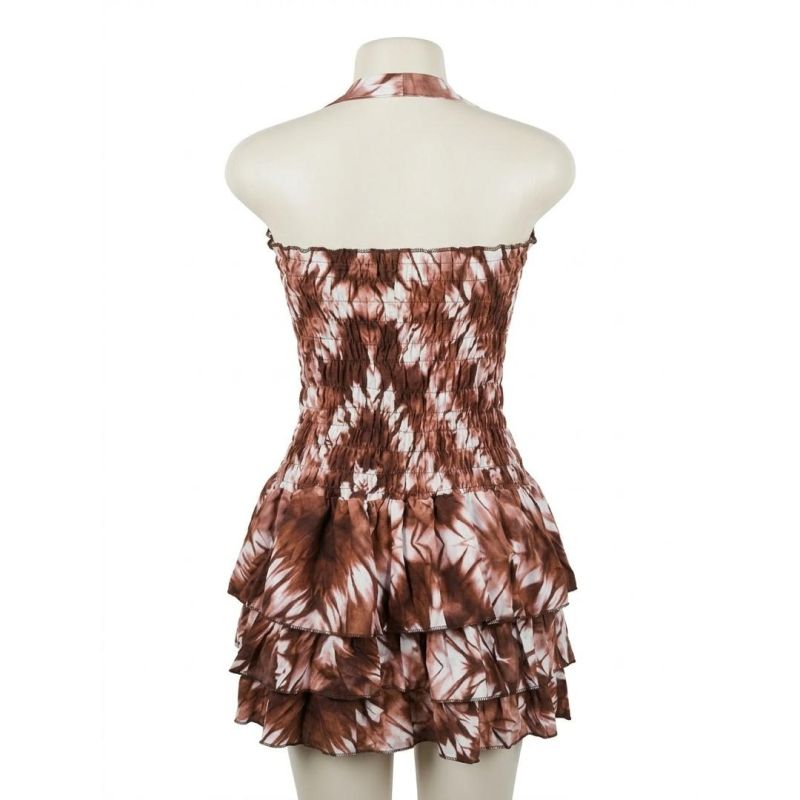 Brown Tie-Dye Smocked Halter Dress with Tiered Ruffle Skirt