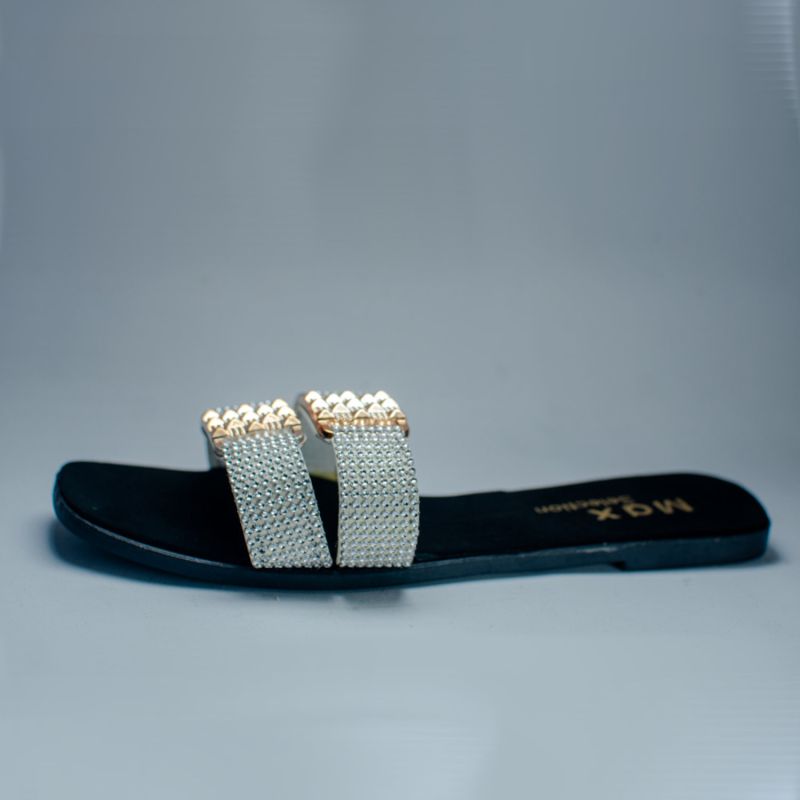 Casual Ladies Flat Slipper Double Top With Silver Design