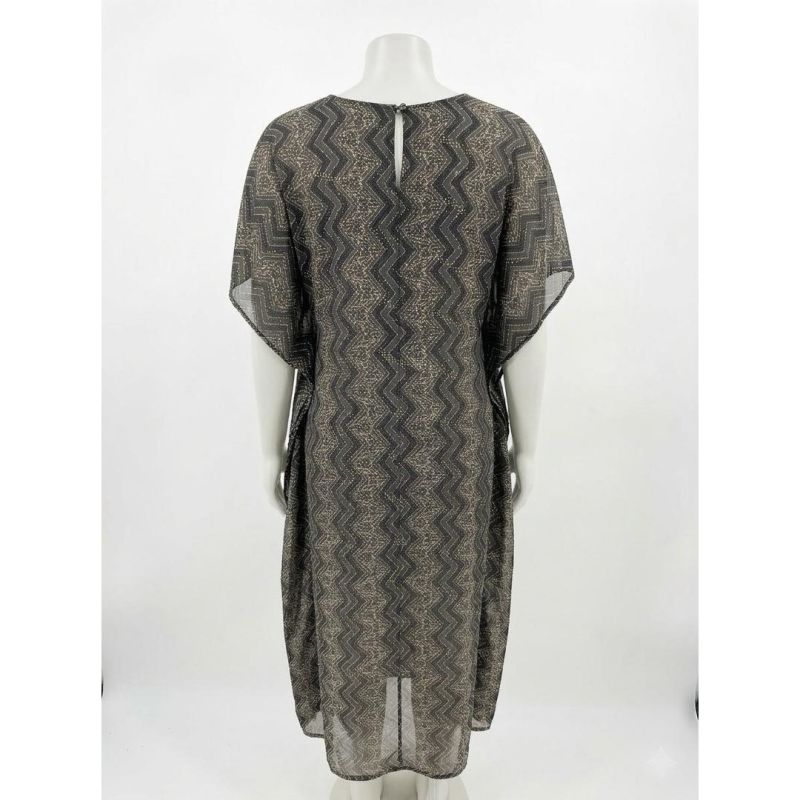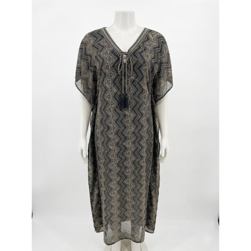 Chevron-Pattern Tassel-Tie Kaftan Maxi Dress