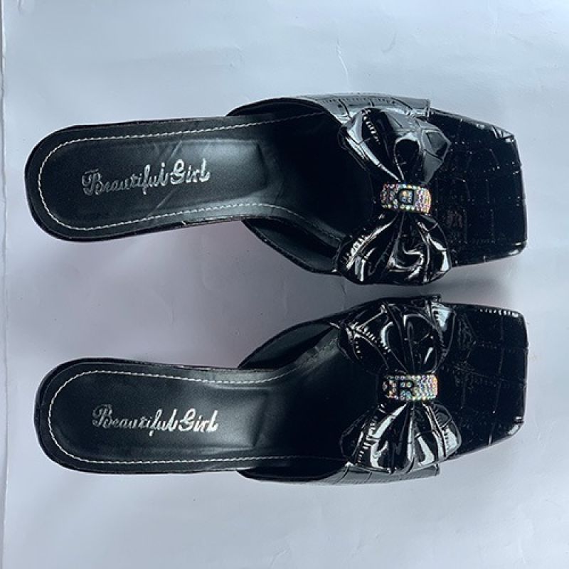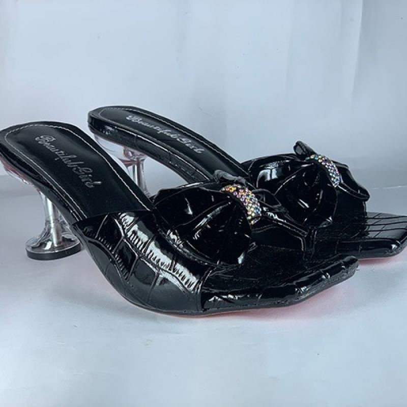 Classic black slippers with silver heel