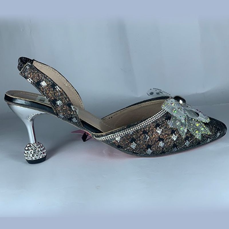 Classic shinyladies heel slippers with fancy