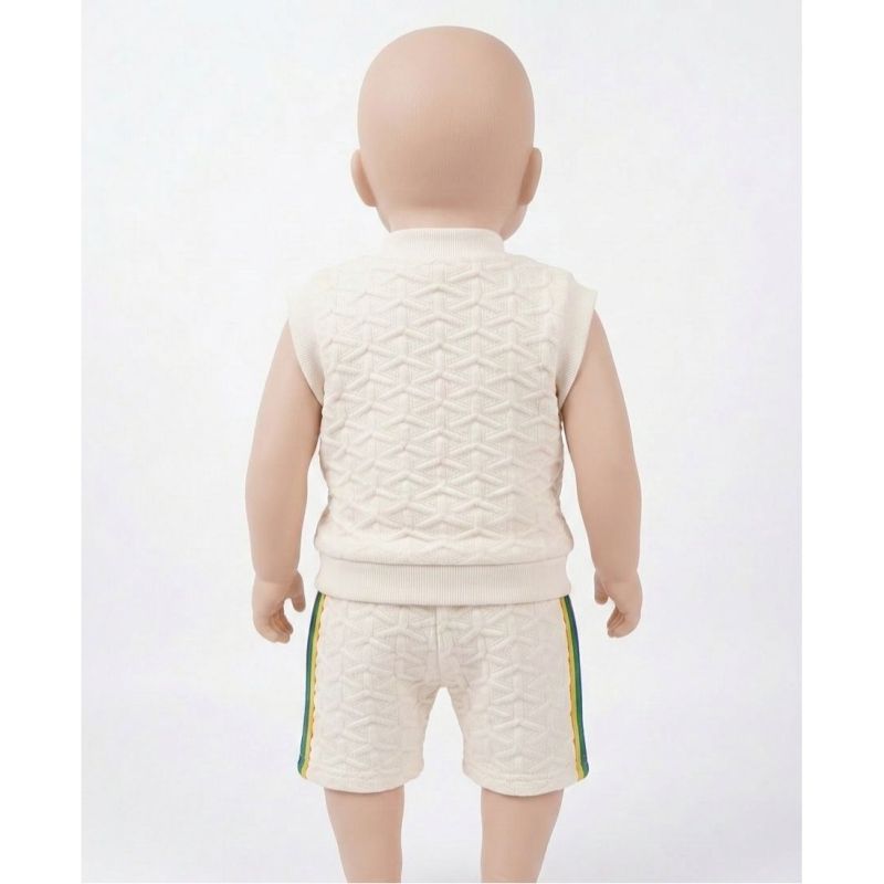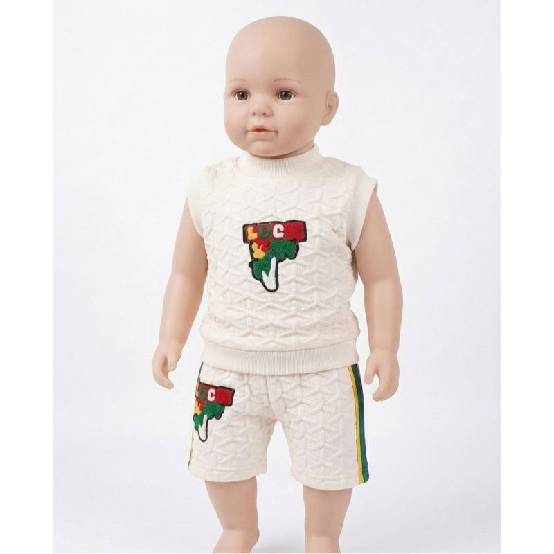 Cream Textured Sleeveless Top and Shorts Set with "LUC" Patch