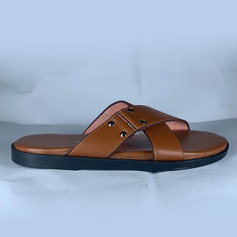 Cross design male brown slippers