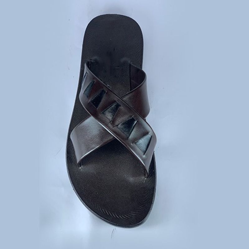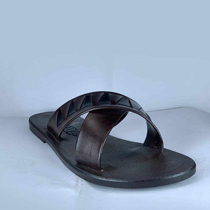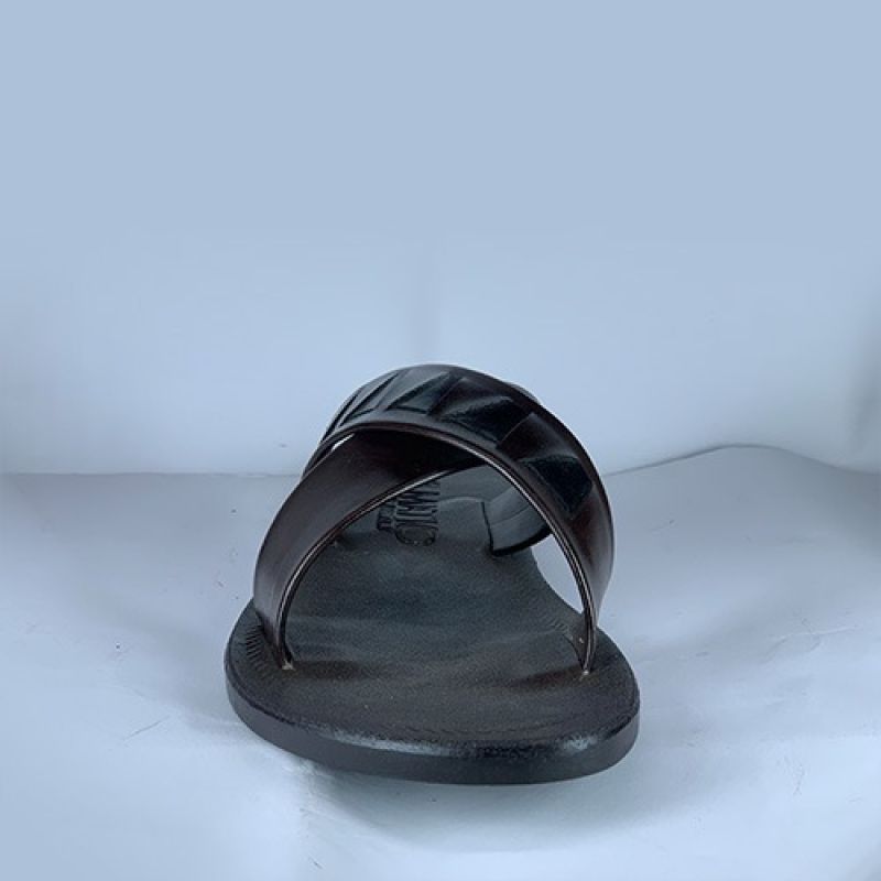 Dark brown cross styled male slippers
